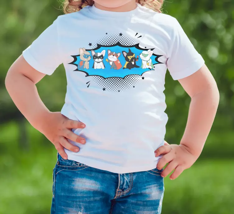 Découvrez notre Tee-shirt enfant collection chiens super-héros, une pièce unique qui fera sourire tous les petits fans d'animaux ! Avec une illustration colorée de chiens en super-héros, ce design ludique et amusant apportera une touche de joie à la garde-robe de vos enfants. Chaque personnage, avec ses traits drôles, incarne l'esprit d'aventure et de camaraderie, idéal pour les jeunes aventuriers qui adorent les animaux domestiques.
