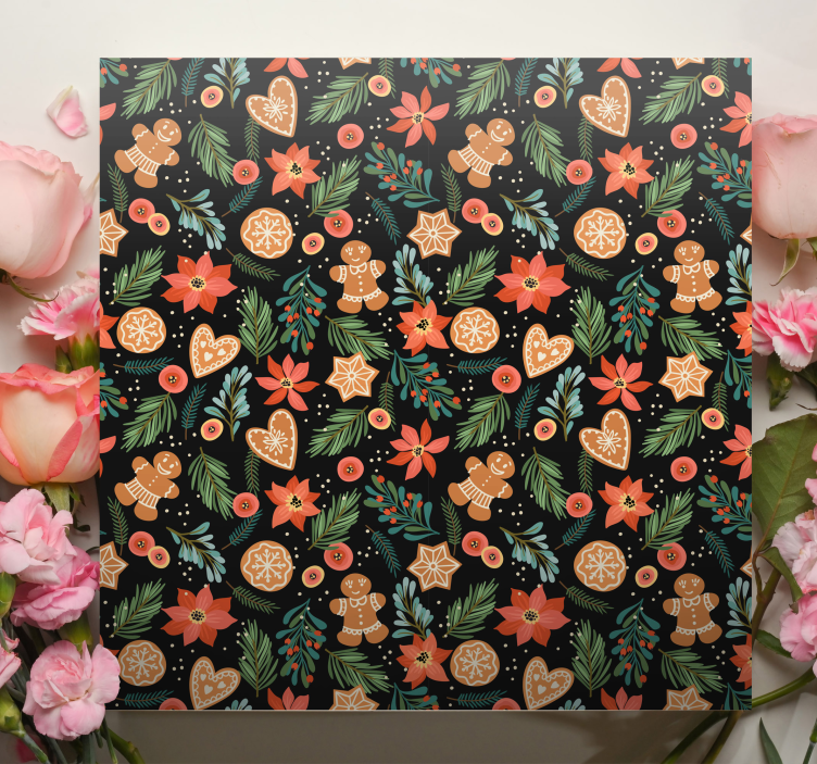 Découvrez notre tableau animaux motifs de pain d'épice de noël, un véritable chef-d'œuvre qui incarne l'esprit des fêtes ! Le design enchanteur mélange des feuilles, des fleurs, des brindilles, des biscuits en pain d'épice, de joyeux poinsettias, des étoiles, et des cœurs, créant une atmosphère festive et chaleureuse. Ce tableau apportera une touche de magie à votre intérieur, illuminant vos vacances avec une ambiance joyeuse.