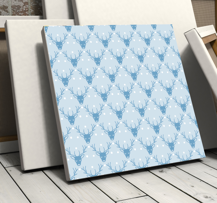 Découvrez notre tableau cerfs motif de cerf d'hiver qui capture l'essence des paysages enneigés. Avec ses cerfs, têtes majestueuses et ses rennes, ce modèle évoque la magie de Noël. La teinte bleue de l'illustration se marie parfaitement avec la neige environnante, apportant une touche de sérénité et de beauté à votre intérieur.