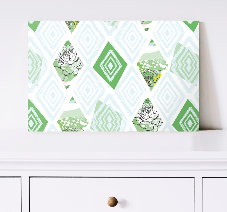 Apportez une touche d'élégance à votre intérieur avec notre Tableau fleurs et plantes motif succulent géométrique. Ce design captivant mélange habilement la beauté des fleurs et des formes géométriques, tels que le diamant et le rhombe, tout en mettant en avant les nuances de vert qui rappellent la nature. Son style abstrait et succulent en fait une pièce maîtresse qui attire le regard et éveille l'imagination.