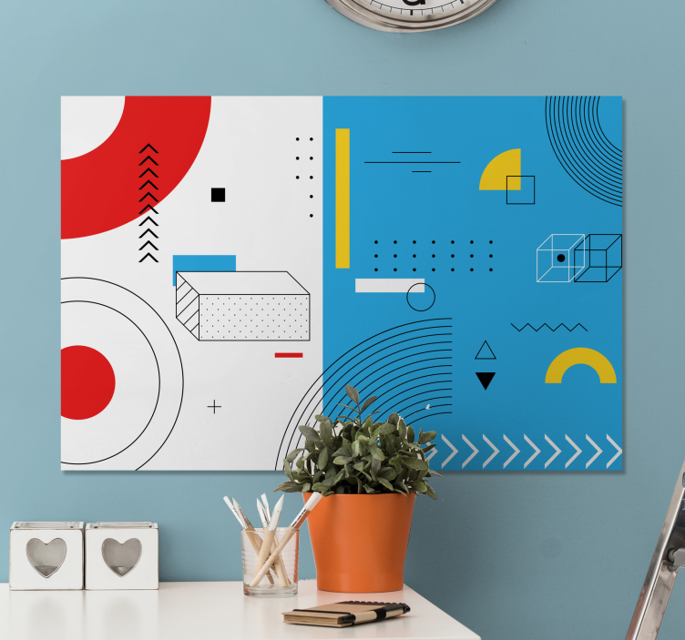 Découvrez notre tableau géométrique composition de formes géométriques, un véritable chef-d'œuvre de design qui allie abstraction et modernité. Ce motif captivant, composé de cercles, triangles, rectangles, flèches et points, crée une harmonie visuelle unique qui dynamisera n'importe quel espace. Laissez-vous séduire par les lignes épurées et les formes géométriques qui apporteront une touche d'élégance à votre intérieur.