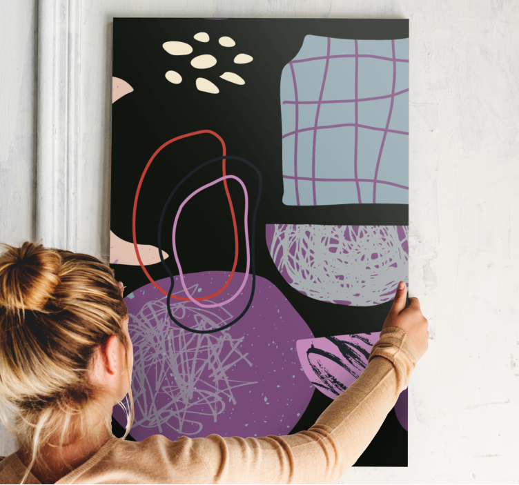 Découvrez notre Tableau ornemental caractéristiques botaniques abstraites, une pièce unique qui embellit votre intérieur avec des motifs modernes et abstraits. Ce design captivant combine des formes géométriques et un collage de couleurs mauves et violettes, créant une atmosphère florale et artistique qui ravira vos invités.