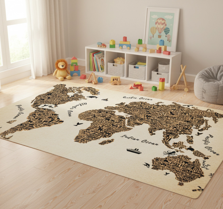 Tapis vinyle carte du monde avec textes personnalisés