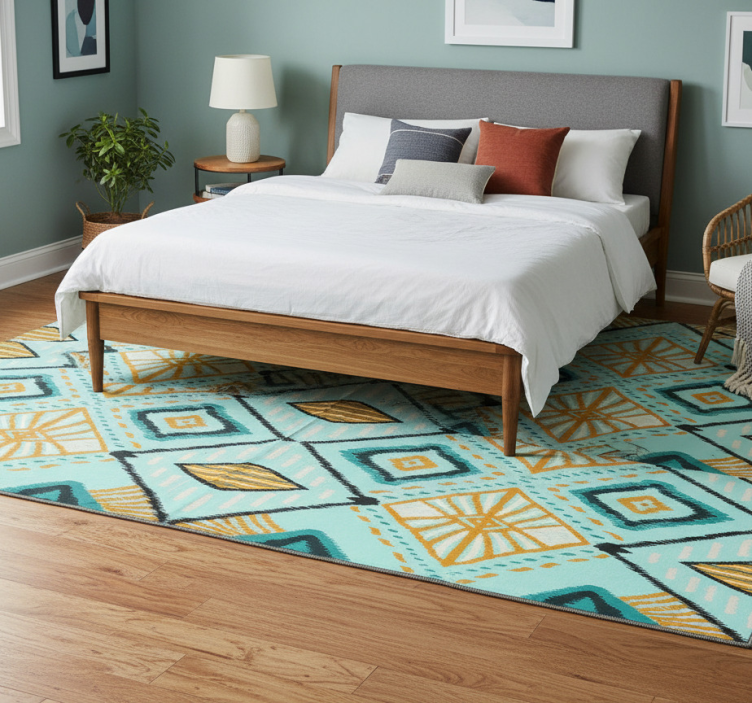 Tapis vinyle chambre design géométrique africain