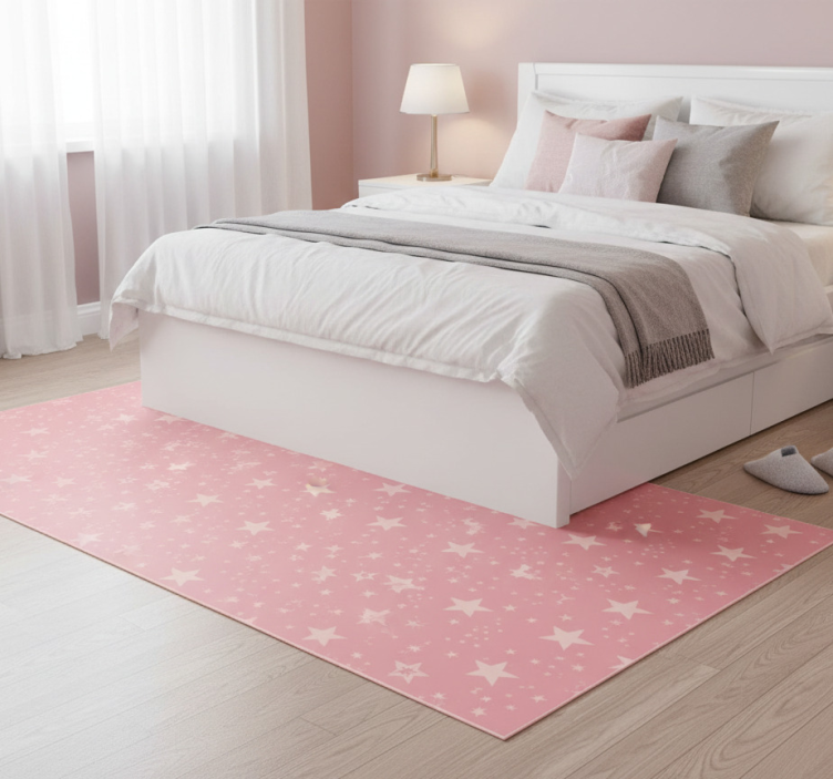 Tapis vinyle chambre étoiles roses claires sur rose foncé