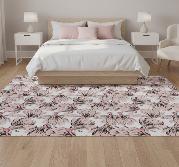 Tapis vinyle chambre fleurs de magnolia blanches et roses