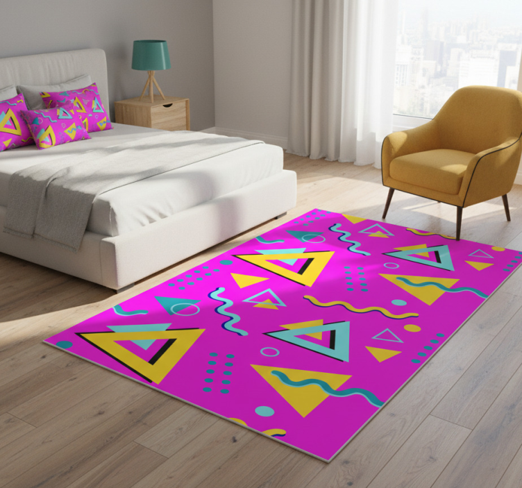 Tapis vinyle chambre formes géométriques rétro 80