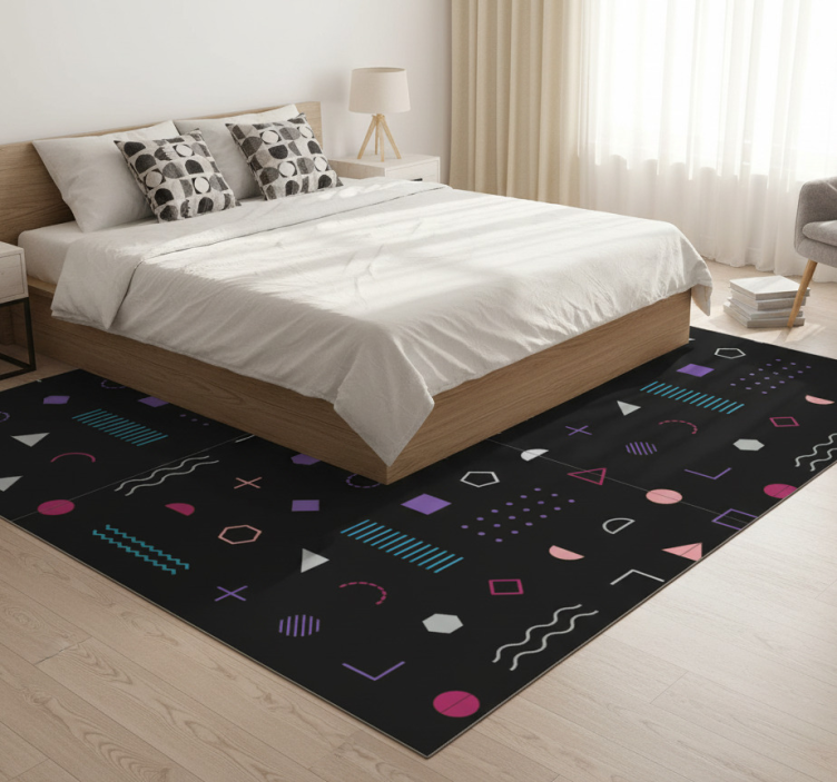 Tapis vinyle chambre formes géométriques rétro multicolores