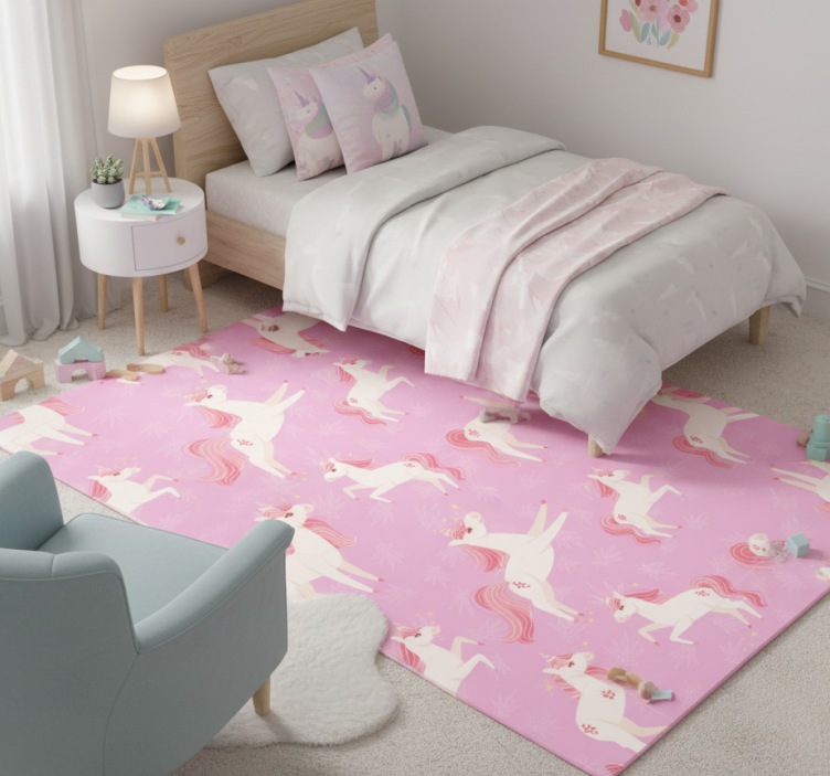Tapis vinyle chambre licornes pastel avec plantes fleurs