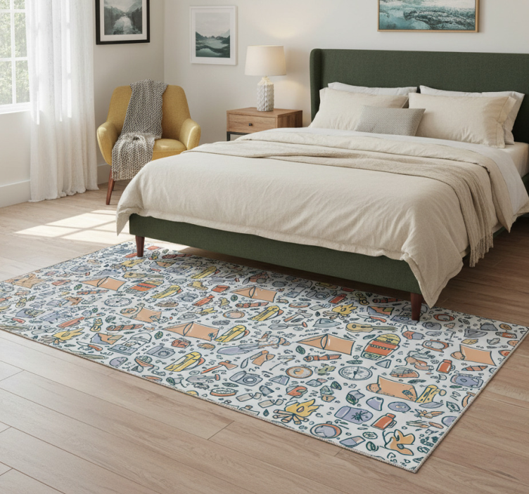 Tapis vinyle chambre montagnes et camping dessinés à la main