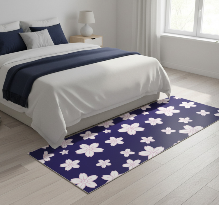 Tapis vinyle chambre motif fleurs de prunier vintage bleu