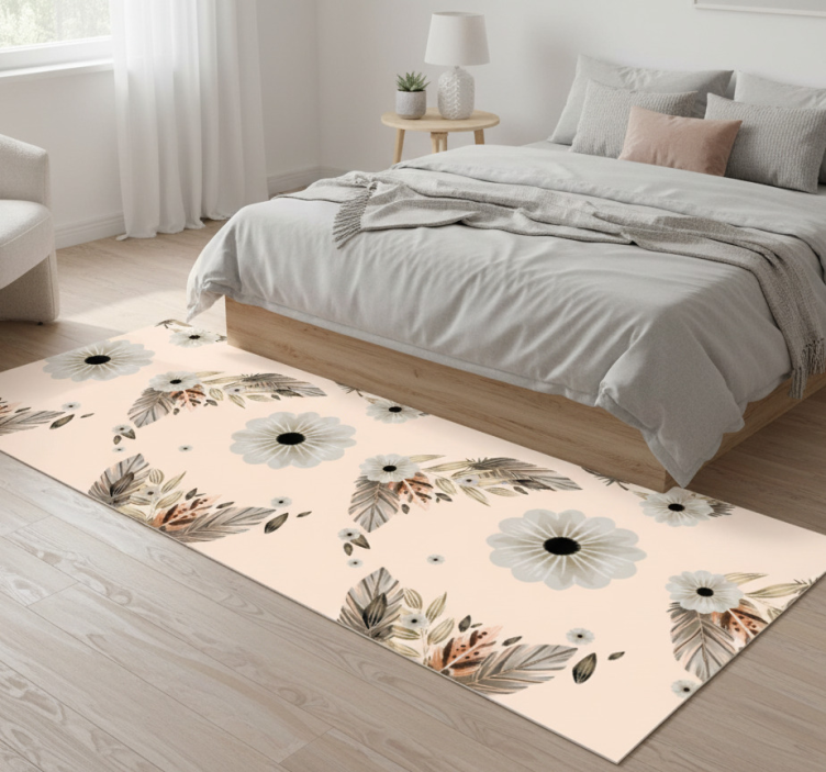 Tapis vinyle chambre motif fleurs pastels roses et noires
