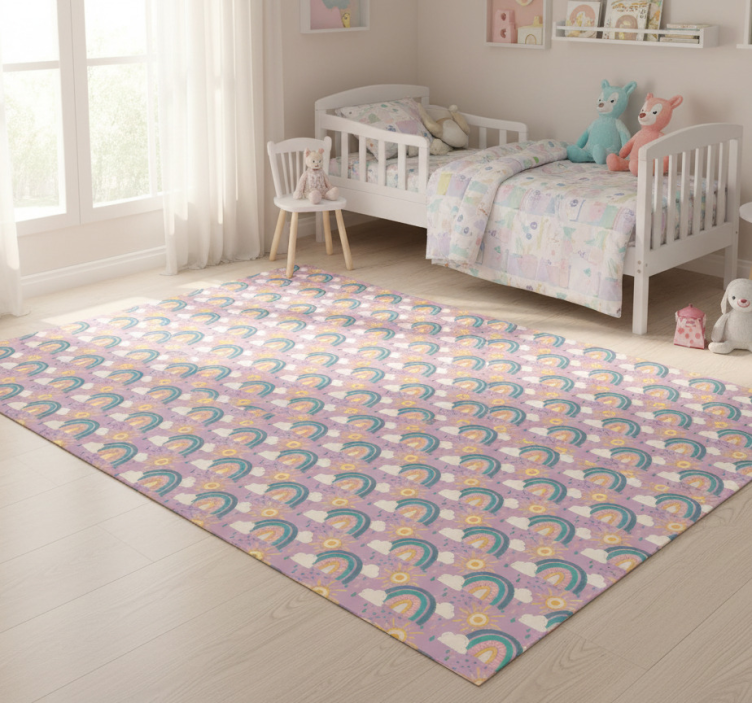 Tapis vinyle chambre motif mignon avec soleil et arc-en-ciel