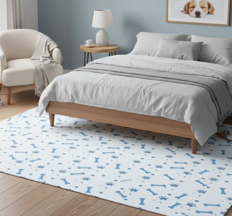 Tapis vinyle chambre motif os de chien bleu