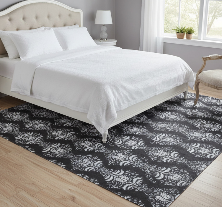 Tapis vinyle chambre motif provincial noir et blanc