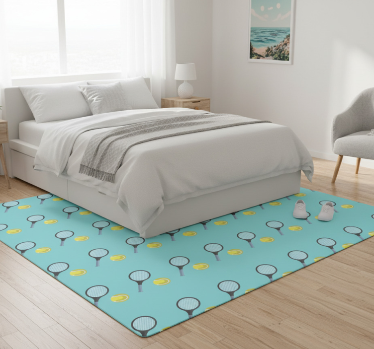 Tapis vinyle chambre motif raquettes et balles de tennis