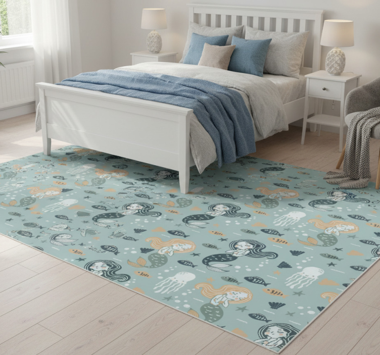 Tapis vinyle chambre motif sirène magique bleue