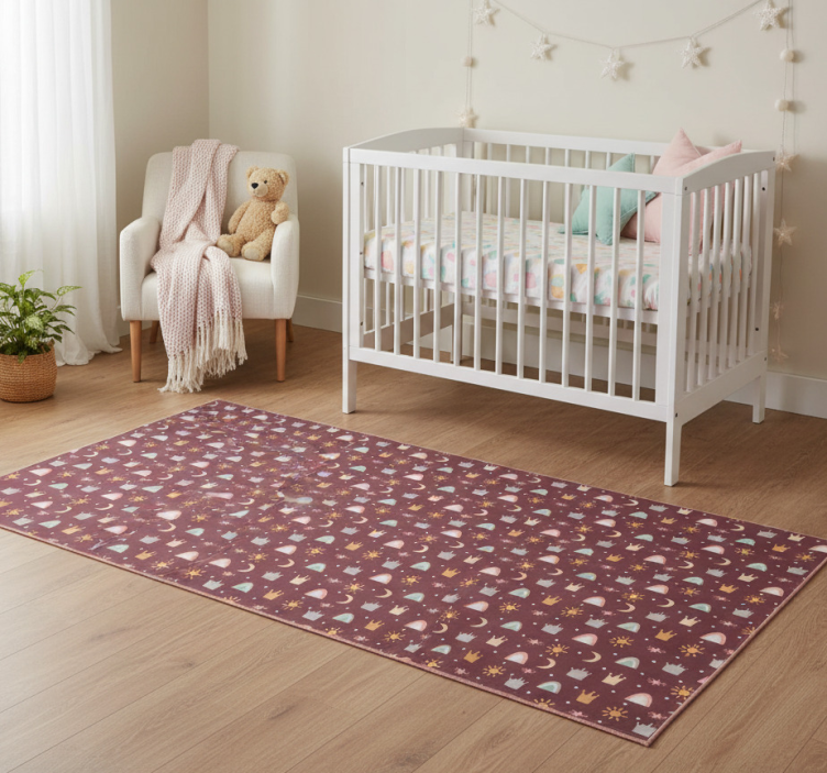 Tapis vinyle chambre motifs couronnes étoiles arc-en-ciel