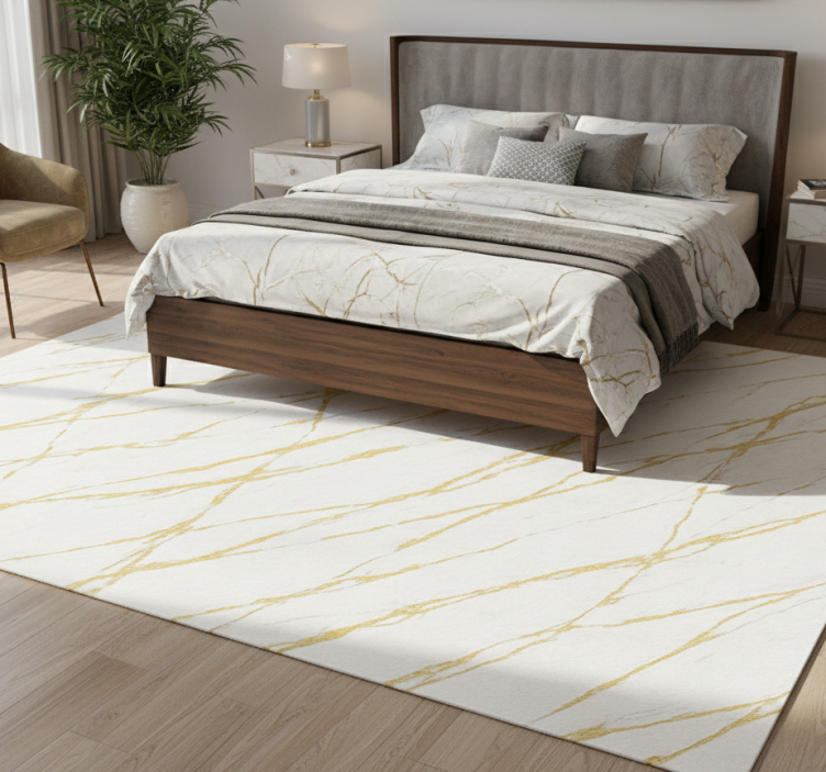 Tapis vinyle chambre pierre blanche avec fissures dorées