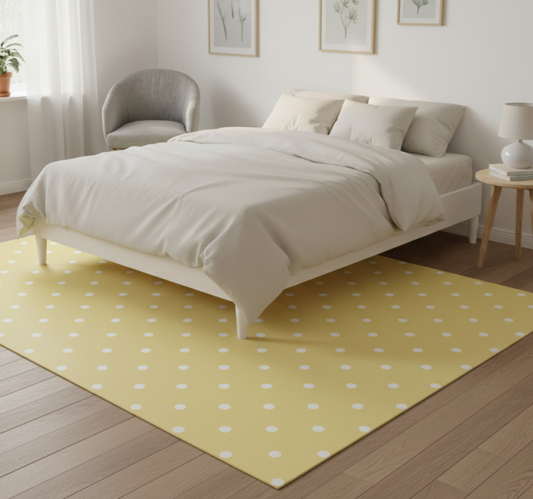 Tapis vinyle chambre pois réguliers sur fond jaune