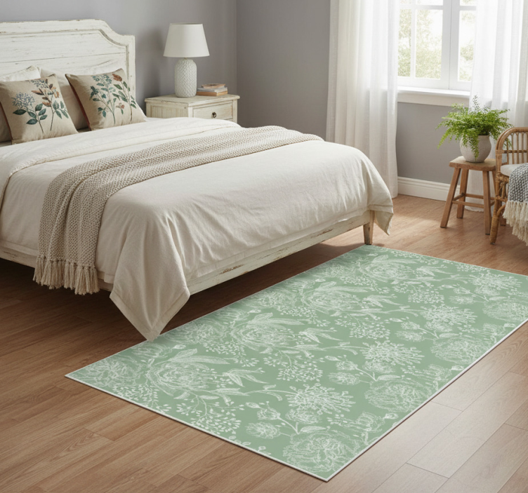 Tapis vinyle chambre style floral vert grandmillenial