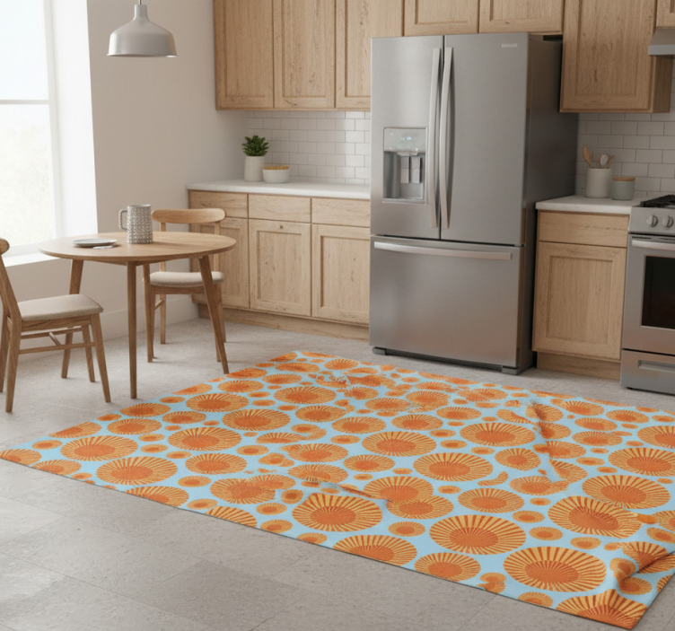 Tapis vinyle cuisine 70's soleil réfrigérateur