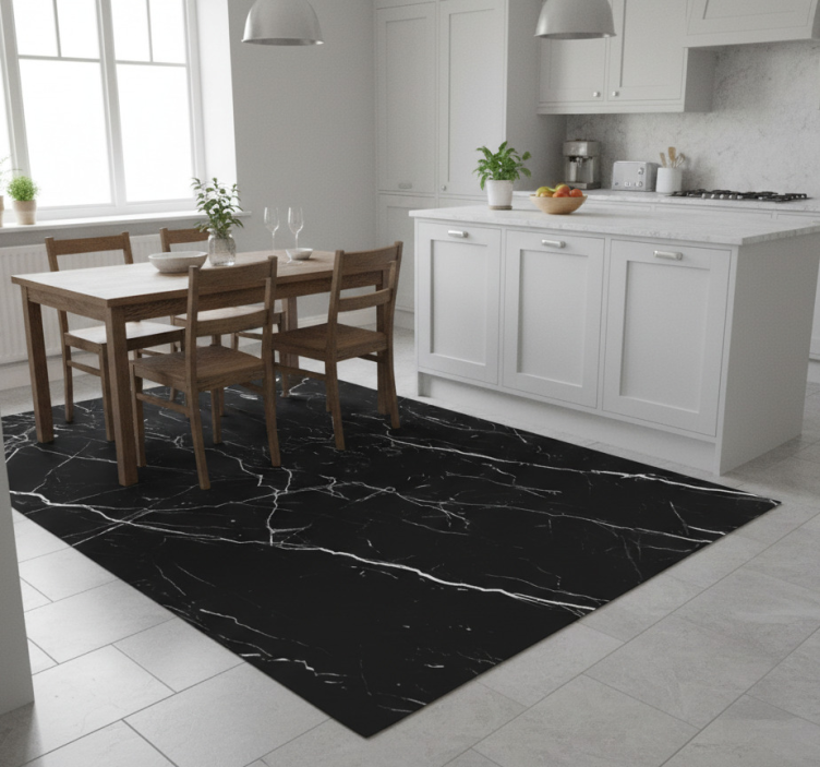 Tapis vinyle cuisine marbre noir