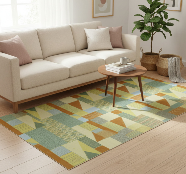 Tapis vinyle géométrique design triangles colorés