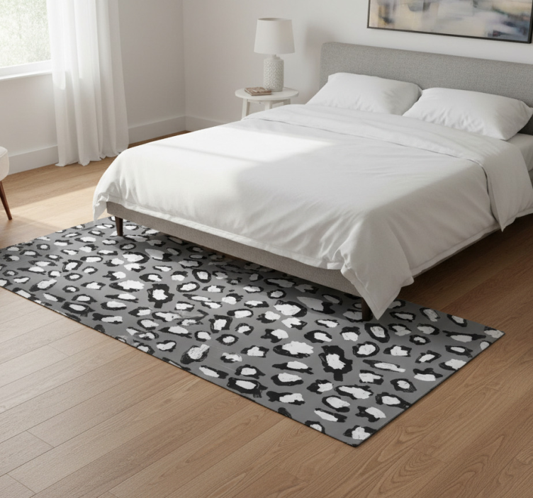 Tapis vinyle motif animal léopard gris et blanc