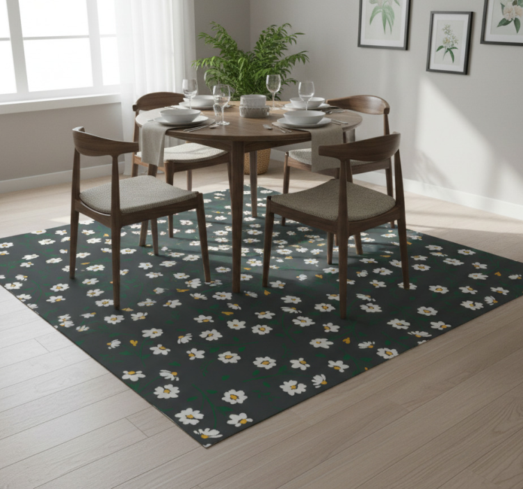 Tapis vinyle plantes fleurs marguerites fond gris