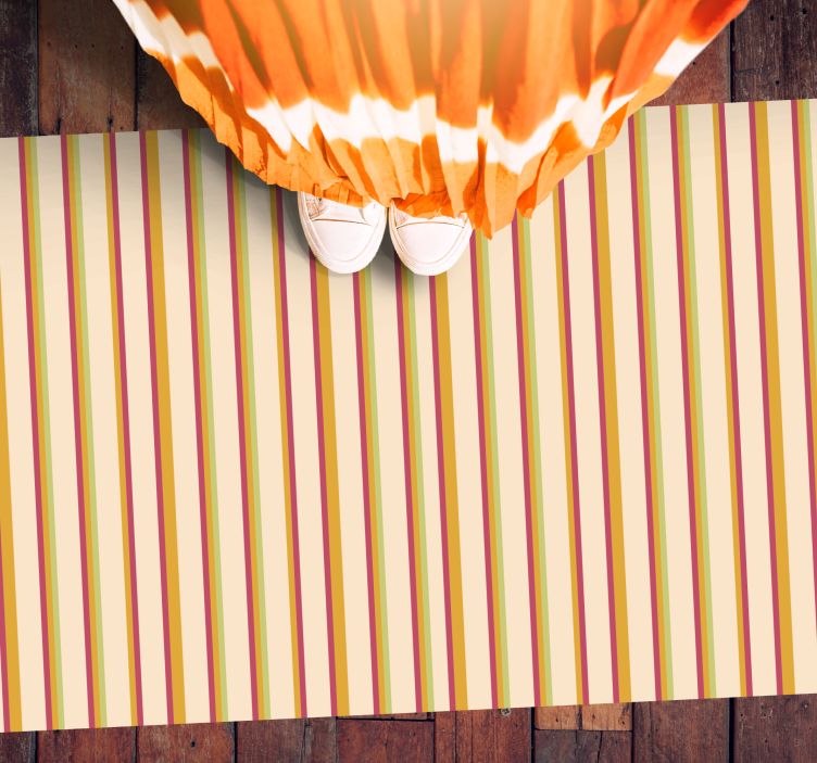 Découvrez le Tapis vinyle rayures élégance multirayée, un accessoire qui allie sophistication et modernité. Avec son design captivant de lignes verticales et ses rayures audacieuses dans des teintes de jaune, rouge, vert et beige, ce modèle apporte une touche de dynamisme à n'importe quelle pièce. Le mélange harmonieux de ces couleurs et motifs crée une atmosphère à la fois chic et chaleureuse, parfaite pour sublimer votre intérieur.