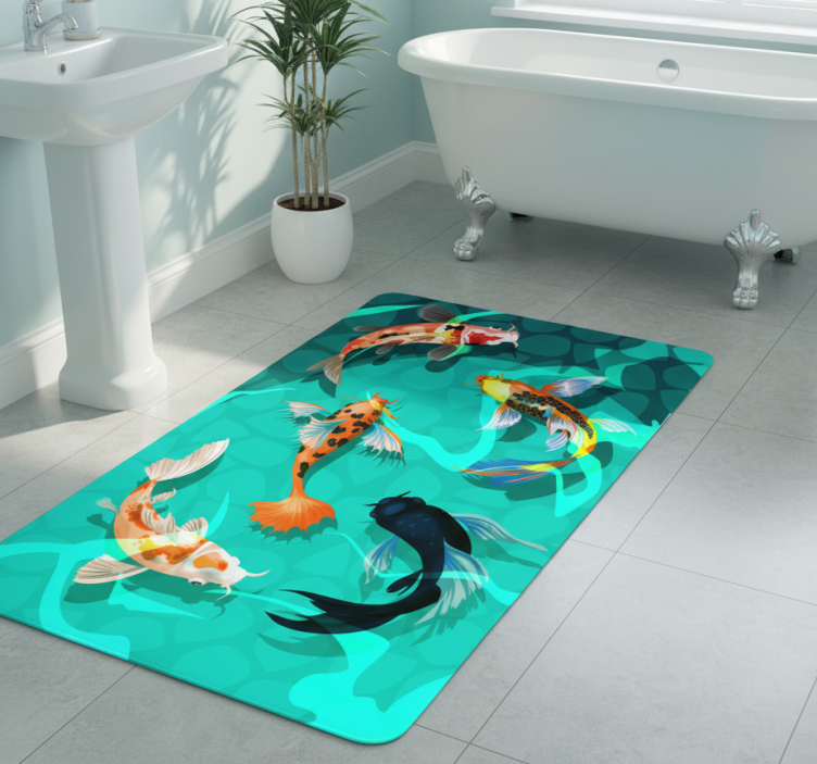 Tapis vinyle salle de bain douche koi